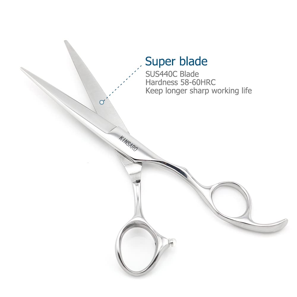 - Brand introduction: KINSARO-Only design,produce and sell professional hair scissors with high cost performance more than 10 years.All of the KINSARO hair scissors can be used at barbers,hair salon or hair studio.All KINSARO hair scissors blade hardness are more than 58HRC.Hardness 58HRC is one requirement of professional level hair scissors.Click 'Visit the KINSARO Store' above the title,you will find many styles KINSARO hair scissors.KINSARO hair scissors,because focus so professional.